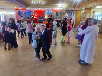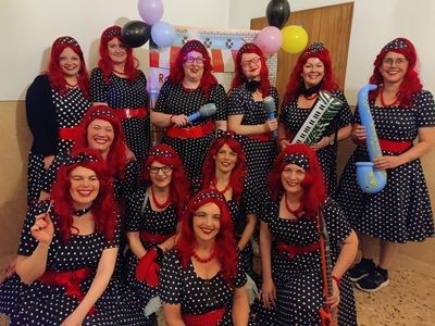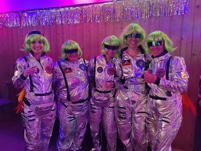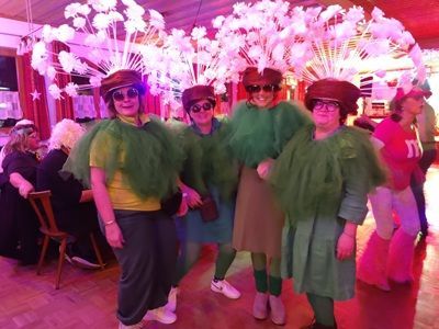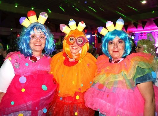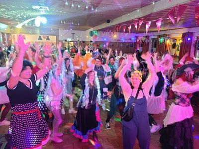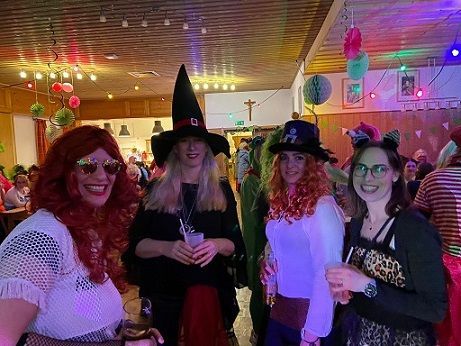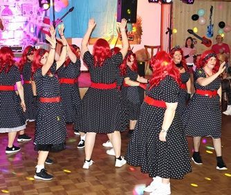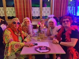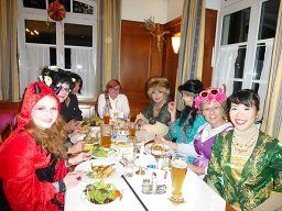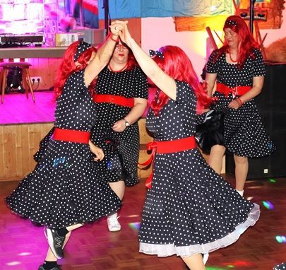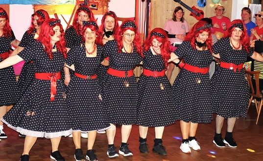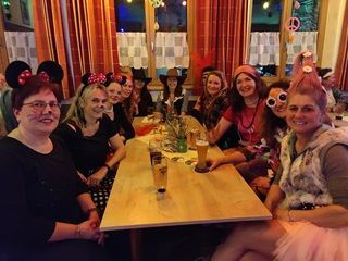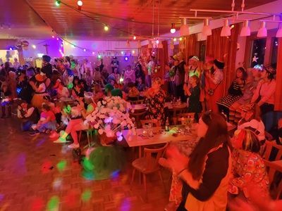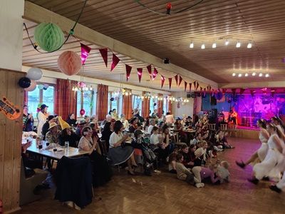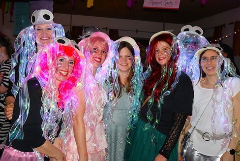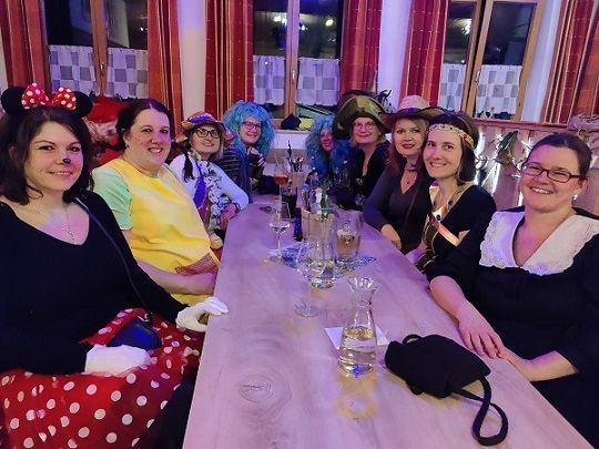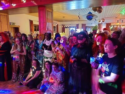 Abends kamen zahlreiche Damengruppen sowie befreundete Frauengemeinschaften aus den umliegenden Gemeinden mit phantasievollen Kostümideen um ausgiebig zu feiern. Zum bunten Treiben mischten sich jede Menge mutige Männer in originellen Damenoutfits. Für überragende Stimmung im prall gefüllten Saal sorgte DJ Bäda mit seinem hervorragenden Musikgespür.