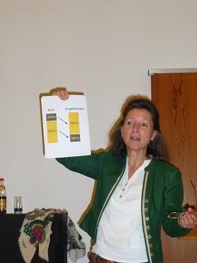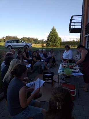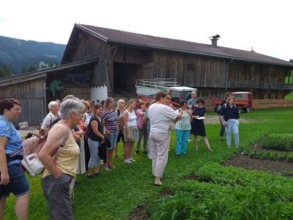 Anschließend gab es viele Informationen und Tipps rund um den Garten von Frau Münch. Dieser ist nach der natur- und heilkundigen Hildegard von Bingen angelegt. Unzählige Heilpflanzen wie Ringelblume, Balsamkraut, Benediktenkraut, Weinraute, Eisenkraut, Andorn, Alant, Boretsch, Fenchel, Reinfarn oder die große Klette wurden samt ihren Wirkungen gezeigt.