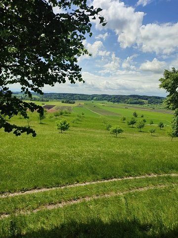 Weiter ging es über Berg am Berger See entlang hinauf zur Burgruine Kling, von der leider nur ein paar Mauerreste zu besichtigen waren. Oft genossen wir die schönen verschiedenen Ausblicke nach Norden, Süden und Westen über das hügelige Voralpenland bis hin zu den Bergen.