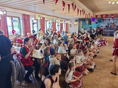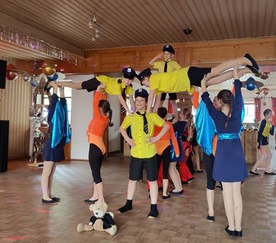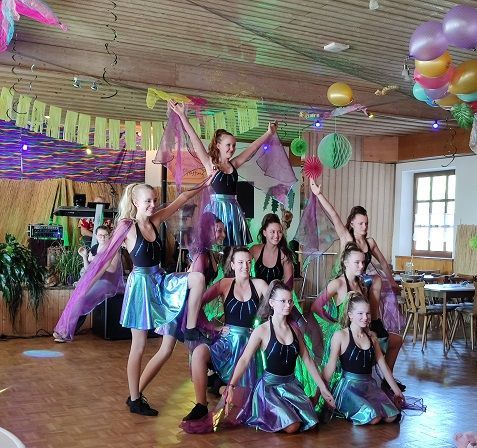 Das Vorbereitungsteam dekorierte den Saal aufwändig in wunderbarem Dschungel-Flair. Die Burschen von der Peracher Hütt’n stellten unkompliziert ihre Bar zur Verfügung. Los ging es am Nachmittag des Unsinnigen Donnerstags mit dem geselligen Faschingskranzl. Ausgiebig wurde zur Musik der „Nasenbach Musi“ aus Albaching getanzt. Dazu boten die Hot Socks Kids und die Hot Socks Teenies aus Ramerberg tolle Showeinlagen.