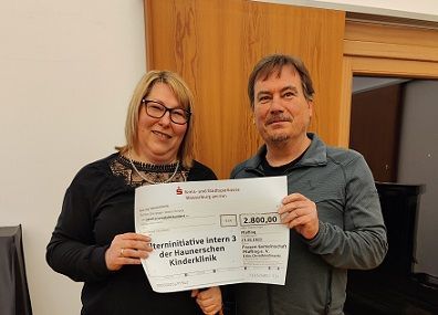 Im Anschluss an den Kassenbericht erfolgte die Spendenübergabe in Höhe von 2.800 € an Herrn Alois Fruth, den 1. Vorsitzenden der Elterninitiative intern 3 in der Haunerschen Kinderklinik. Herr Fruth stellte in seinem Vortrag die Aktivitäten des Vereins für die Kinderkrebsstation in der Haunerschen vor. Der Verein besteht seit 38 Jahren aus ca. 400 Mitgliedern, jedoch nur noch aus 6-8 Aktiven. Pro Jahr hat der Verein ca. 700.000 € Einnahmen. Damit werden 8,5 Stellen mit ca. 350.000€ vom Verein finanziert, da diese Leistungen nicht im Klinikbetrieb enthalten sind. (2 Psychologen, Sozialpädagogen, Erzieher, Kunst- und Musiktherapeuten, eine Assistenzkraft für Schreibarbeiten sowie für Fortbildungen)
