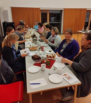 Zum allerersten Ratsch-Cafe luden die Damen der Frauen Gemeinschaft am 5. Mai 2023 ein. Rund 20 Damen und ein Mann fanden sich