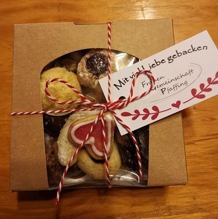 Liebevoll dekoriert und voll mit leckeren Weihnachtsplätzchen mussten die Plätzchen-Schachteln der neuen Aktion der Frauen Gemeinschaft Pfaffing nicht lange auf Käuferinnen und Käufer warten. Bereits innerhalb weniger Stunden waren die ersten 70 Schachteln beim Scheierl, (Edeka Breitsameter in Pfaffing) verkauft!