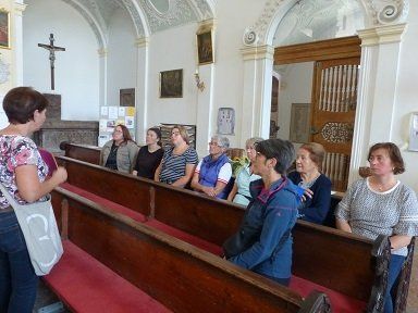 Frau Ursula Münch begrüßte die Gruppe zur Kirchenführung in der Kirche, die dem hl. St. Christophorus geweiht ist. Früher war der hl. Jakobus der Namenspatron der Kirchleins. Dass es sich um einen Wallfahrtsort handelt, war wohl den wenigsten bewusst.